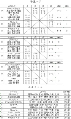 全10チームが参加し、試合は男子、女子、ミックスダブルスの3試合とし、予選を3ブロックで実施し、本戦は上位2チームと下位チームでのトーナメントといたしました。