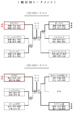 1位2位トーナメントは「おむすび」の優勝、「まーのり」が準優勝、3位4位トーナメントは「ITEMS」の優勝、「スクール星」の準優勝で幕を閉じました。
