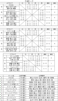 11チームが参加し試合はすべてミックスダブルスの3試合とし、3ブロックで予選を実施し、本戦は上位2チームと下位チームでそれぞれトーナメントといたしました。